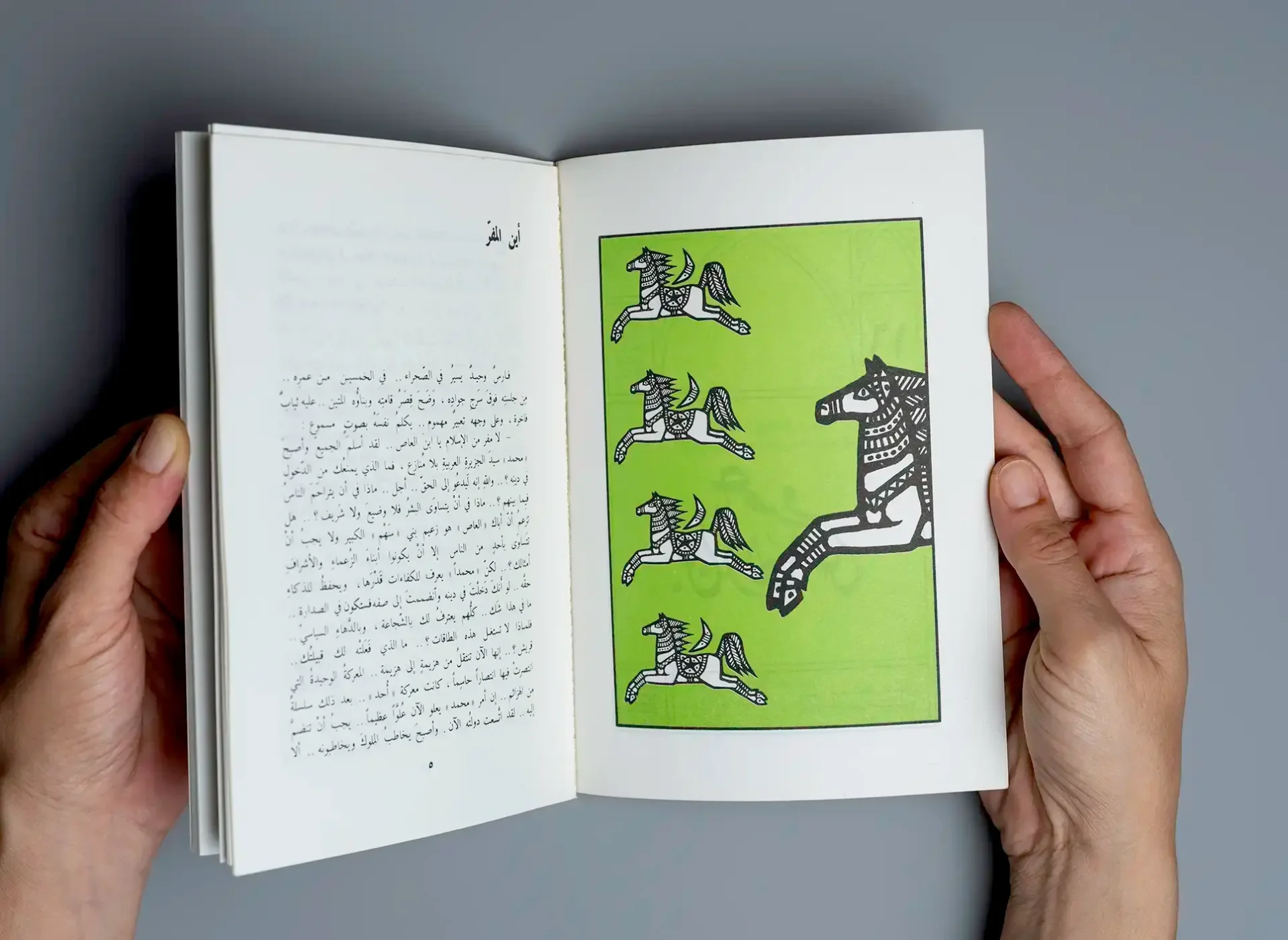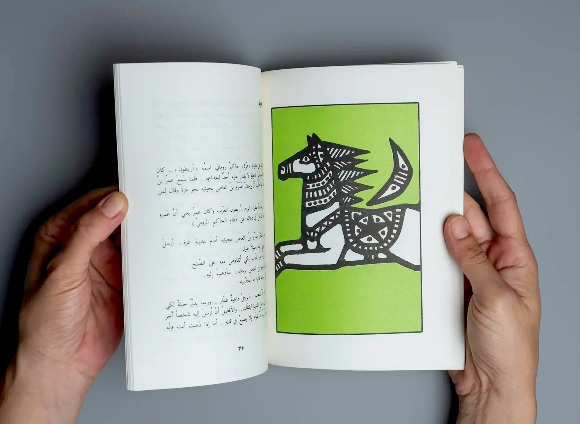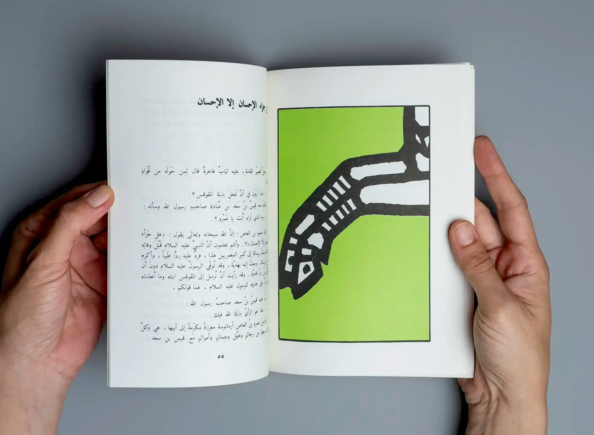 The changing visual economy of Arabic books extended beyond the cover image. Books are three-dimensional objects, closely linked to the human body in terms of size, weight, paper, and binding. These physical qualities cater to various reading contexts, and in doing so, helped create new book markets. From low-cost paperback editions and children’s picture books that fit in the palm of a hand, to large, lavishly printed poetry anthologies and limited-edition artists’ books, each design choice shaped a distinct reader experience.